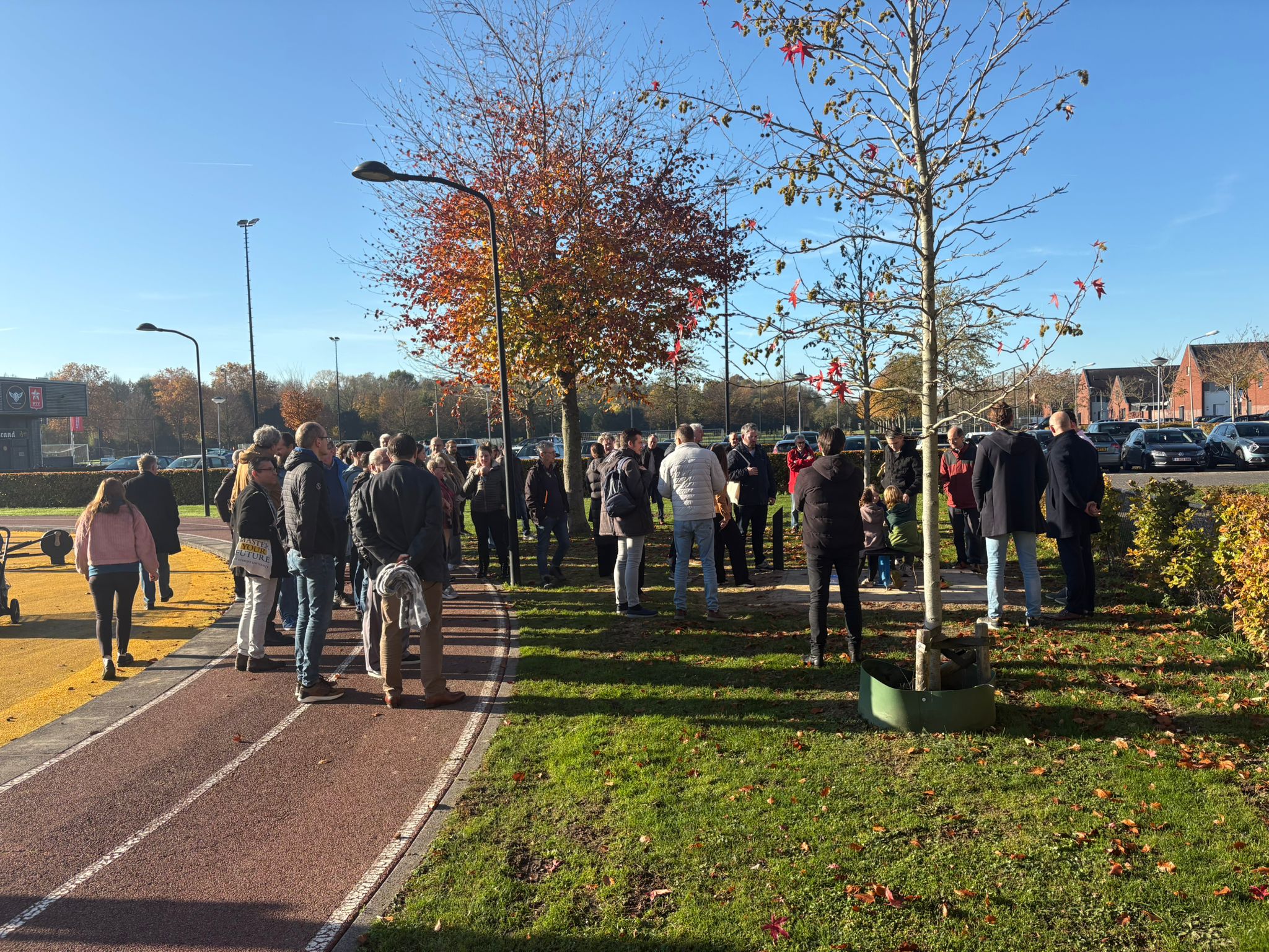 Gelukkig liep de één na de ander al snel binnen. Allemaal met een lach op het gezicht. Ik had nog wel enige vrees dat er uiteindelijk iets mis zou gaan bij de schaaktafel, immers we hadden niet gecontroleerd of er al iets zichtbaar was (en je weet het nooit bij de gemeente). Ik begreep van de familie dat zij ook al hadden lopen scouten in de week voorafgaand aan de onthulling, maar er was nog niets te zien.