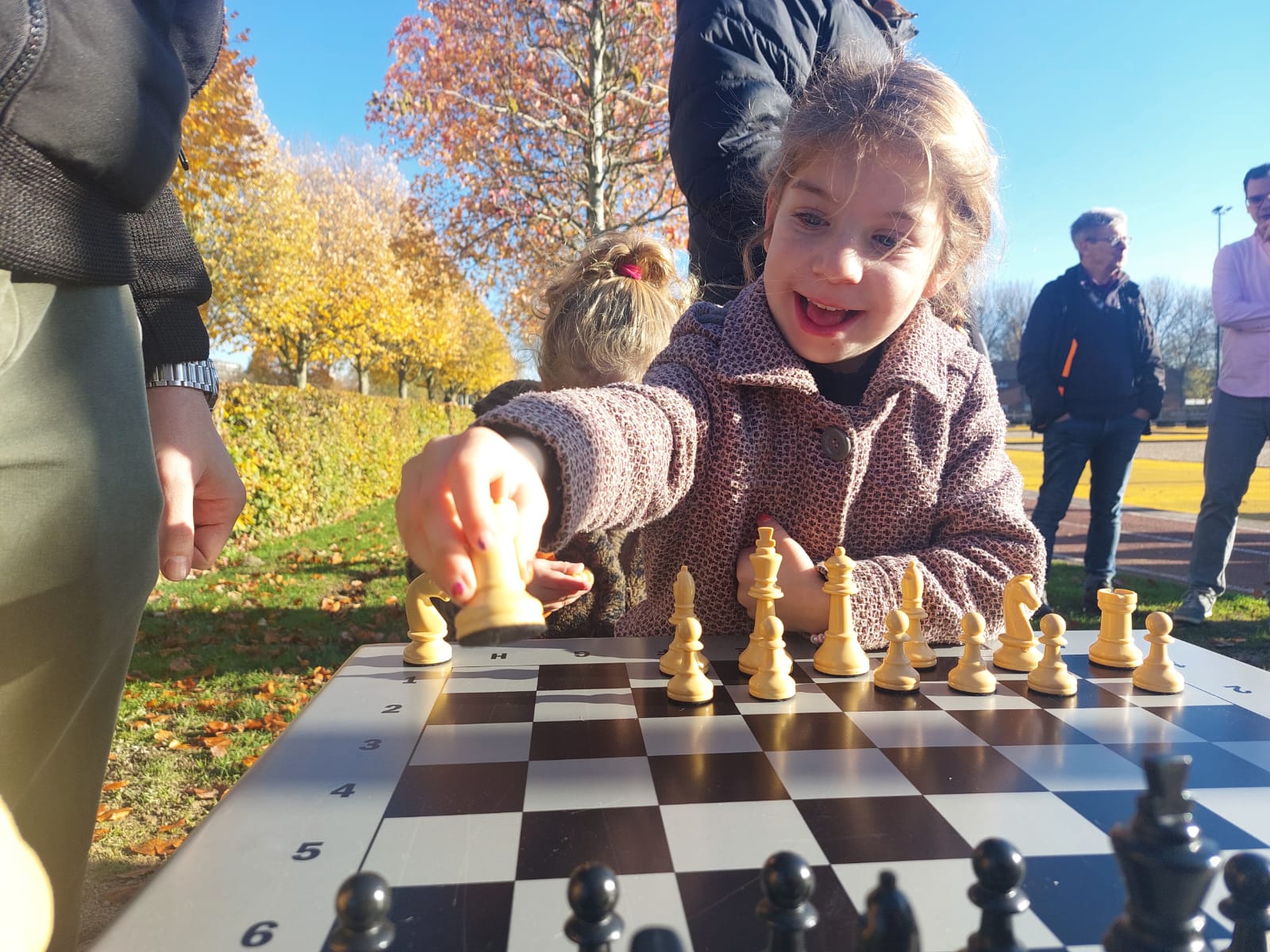 Om 10:00 hadden we afgesproken bij Sportpark West waar de schaaktafel van Frank geplaatst was, een prachtige rustige plek in de najaarszon. En het klinkt misschien gek, maar het voelde voor het eerst alsof Frank daar ook was; met alle mensen die er op af waren gekomen, het vredige najaarsweer, het schaken wat verbroederd, het was alles waar Frank zich zo voor heeft ingezet in zijn leven. En mooiere herinnering is er eigenlijk niet.